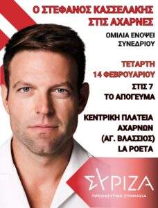 👉Στην Κεντρική Πλατεία του Μενιδίου στις 14 Φεβρουαρίου ο Στέφανος Κασσελάκης στις 7 το απόγευμα ΕΠΙΚΑΙΡΟΤΗΤΑ ΠΟΛΙΤΙΚΗ 12 Φεβρουαρίου, 202412 Φεβρουαρίου, 2024acharnaiki Μοιραστείτε το… Facebook X Pinterest LinkedIn Save Email Print