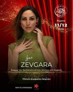 Κάλαντα, τραγούδια, ένα νέο χριστουγεννιάτικο χωριό, παιχνίδια και εκπλήξεις συνθέτουν την πιο όμορφη βραδιά, που θα κορυφωθεί στις 20:00 με τη μεγάλη συναυλία της Λένας Ζευγαρά,η οποία θα χαρίσει μια φαντασμαγορική μουσική βραδιά γεμάτη ρυθμό και λάμψη.