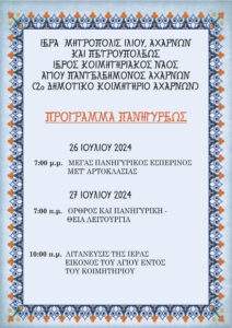 Πανηγυρίζει με κάθε λαμπρότητα και τιμή , ο κοιμητηριακός Ιερός Ναός του νέου κοιμητηρίου της πόλεως μας.
