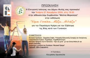 Αύριο Τετάρτη 27 Νοεμβρίου η μεγάλη εκδήλωση της Επιτροπής Ισότητας Δήμου Φυλής για την εξάλειψη της βίας κατά των Γυναικών