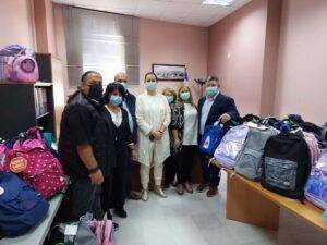 Το κάθε σετ σχολικών ειδών περιείχε: Τσάντα με κασετίνα, γραφική ύλη, μάσκες και αντισηπτικά μαντηλάκια, νερά καθώς και μια σακούλα με μπισκότα, κρουασάν, κράκερς και μπάρες δημητριακών.