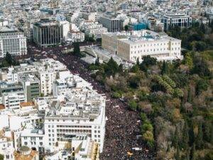 Ιστορική η απεργιακή συγκέντρωση στην Αθήνα με τους πολίτες να φωνάζουν ειρηνικά για δικαιοσύνη με αφορμή τη συμπλήρωση δύο ετών από τη μοιραία νύχτα στα Τέμπη και κεντρικό σύνθημα το «Δεν έχω οξυγόνο».