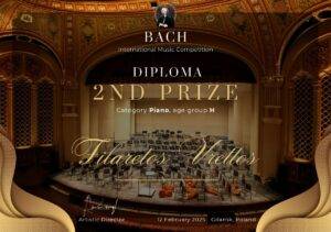Σπουδαία διεθνής διάκριση για έναν νέο ταλαντούχο πιανίστα της πόλης μας. Πρόκειται για τον Φιλάρετο Βρεττό που κατάφερε να ξεχωρίσει και να διακριθεί μέσα από 250 καλλιτέχνες από όλο το κόσμο κατακτώντας το 2ο βραβείο στο διεθνή μουσικό διαγωνισμό Bach International Music Competition στη Πολωνία.