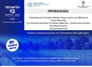 Μετά από 21 χρόνια αναμονής η Πισίνα ( Κολυμβητήριο) του Αθλητικού Κέντρου στο Ολυμπιακό Χωριό  ανοίγει ξανά τις πύλες της την Τετάρτη, 12 Μαρτίου 2025.