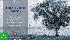 Για περισσότερες πληροφορίες και οδηγίες αυτοπροστασίας από τα έντονα καιρικά φαινόμενα, οι πολίτες μπορούν να επισκεφθούν την ιστοσελίδα του Υπουργείου Κλιματικής Κρίσης και Πολιτικής Προστασίας στην ηλεκτρονική διεύθυνση civilprotection.gov.gr.