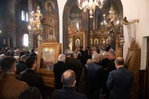 Εκατοντάδες πιστοί έσπευσαν το πρωί της Κυριακής 6 Απριλίου 2025 στην Αρχιερατική Θεία Λειτουργία του Ιερού Ναού Αγίου Κωνσταντίνου κι Ελένης Άνω Λιοσίων προεξάρχοντος του Μητροπολίτη κ.κ. Αθηναγόρα, προκειμένου να ασπαστούν τη Χάρη της Εικόνας της Παναγίας της Μονής Κλειστών.