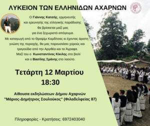 ΛΥΚΕΙΟ ΤΩΝ ΕΛΛΗΝΙΔΩΝ = ΠΑΡΑΡΤΗΜΑ ΑΧΑΡΝΩΝ : Την Τετάρτη 12 Μαρτίου γνωρίζουμε την παράδοση της Αργιθέας και των Αγράφων!!!