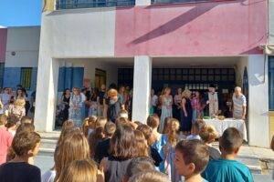 Στο ίδιο κλίμα και οι εκπαιδευτικοί, υποδέχτηκαν με χαρά τις μαθήτριες και τους μαθητές τους και μοιράστηκαν ευχές για μια δημιουργική και επιτυχημένη σχολική χρονιά.
