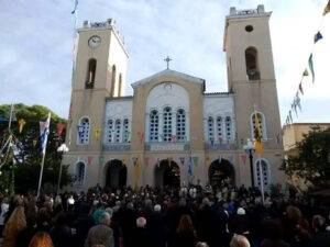 Η λιτανεία κατέληξε στα πρόπυλα του Ι.Ν. του Αγίου Βλασίου. Της λιτανευτικής πομπής προηγούντο αγήματα από το Στρατό και την Αστυνομία και η φιλαρμονική του Δήμου Αχαρνών.