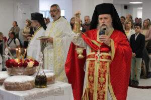 Πριν την απόλυση της λειτουργίας ο Σεβασμιώτατος μαζί με τους ιερείς τέλεσαν την ακολουθία της ευλογίας των άρτων και των κολλύβων των αγίων.