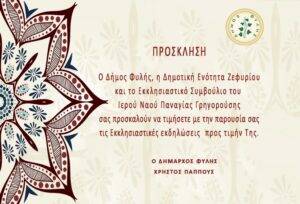 19:00 Πανηγυρικός Εσπερινός μετ’ αρτοκλασίας & θείου κηρύγματος.
