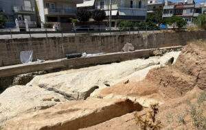 Χαρακτηριστικό της καθυστέρησης, είναι ότι κατά τη διάρκεια εκτελούμενων έργων στο ρέμα της Εσχατιάς, που πραγματοποιούνται από το Υπουργείο Υποδομών και Μεταφορών υπό την εποπτεία της Αρχαιολογικής Υπηρεσίας, αποκαλύφθηκε ένα αρχαίο σύστημα αγωγών εντός της κοίτης του ρέματος. Το σύστημα περιλάμβανε αγωγούς λαξευμένους στο φυσικό βράχο, κτιστές ανωδομές, φρεάτια, καθώς και άλλες σχετικές διαμορφώσεις, όπως κλίμακες πρόσβασης και δεξαμενή.