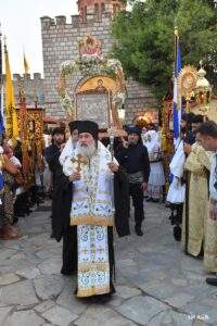 Στον Όρθρο χοροστάτησε ο Σεβασμιώτατος Θεσσαλονίκης κ. Γρηγόριος, στην δε Θεία Λειτουργία προεξήρχε ο Σεβασμιώτατος Ποιμενάρχης μας, κ. Χρυσόστομος, συλλειτουργούντων των Σεβασμιωτάτων Πειραιώς και Σαλαμίνος κ. Γεροντίου και Θεσσαλονίκης κ. Γρηγορίου.
