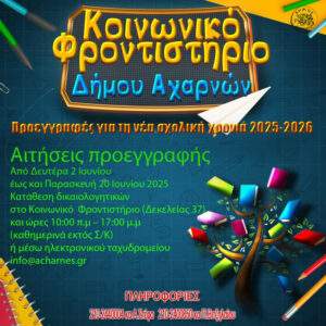 Για μια ακόμη χρονιά ο Δήμος Αχαρνών θέτει στη διάθεση της μαθητικής κοινότητας των Αχαρνών μία υποστηρικτική δομή, η οποία έχει βραβευθεί για τις υπηρεσίες της.