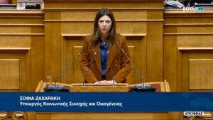 Στην ομιλία της, η υπουργός Οικογένειας και Κοινωνικής Συνοχής της Ελλάδας, Σοφία Ζαχαράκη τόνισε τη σημασία της “συμμετοχής των γυναικών στην αγορά εργασίας, την επιχειρηματικότητα και σε ηγετικές θέσεις”.